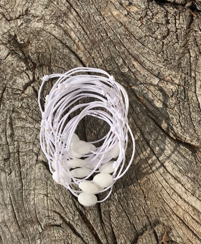 39,00 €Bracelet perle blanche ovale Cordon tres résistant et réglable grâce aux noeuds coulissants
